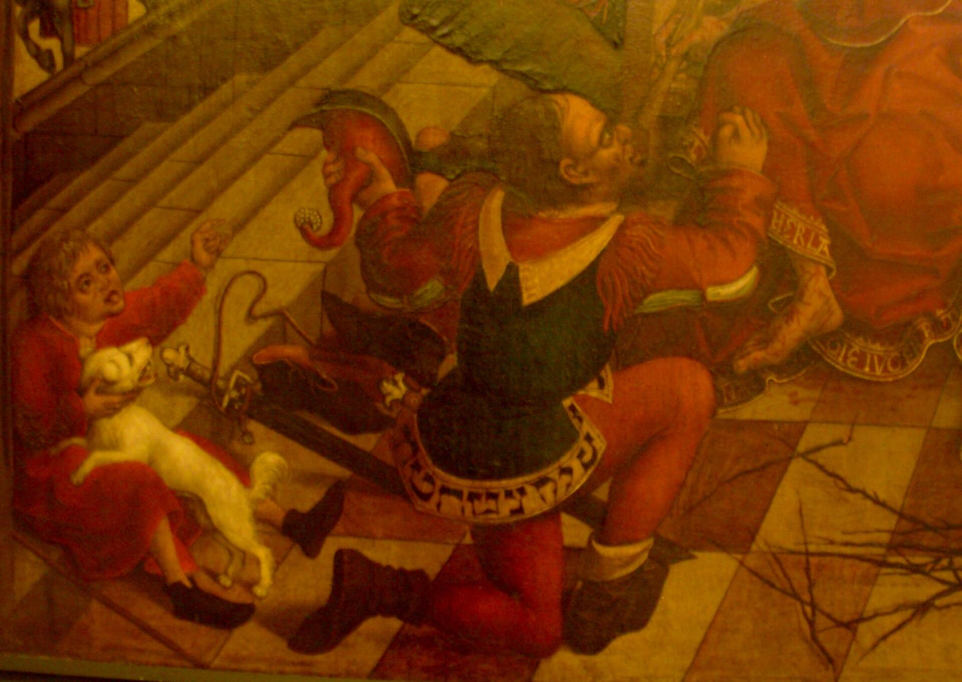 Ausschnitt aus einer "Verspottung Christi" mit pseudohebräischen Lettern